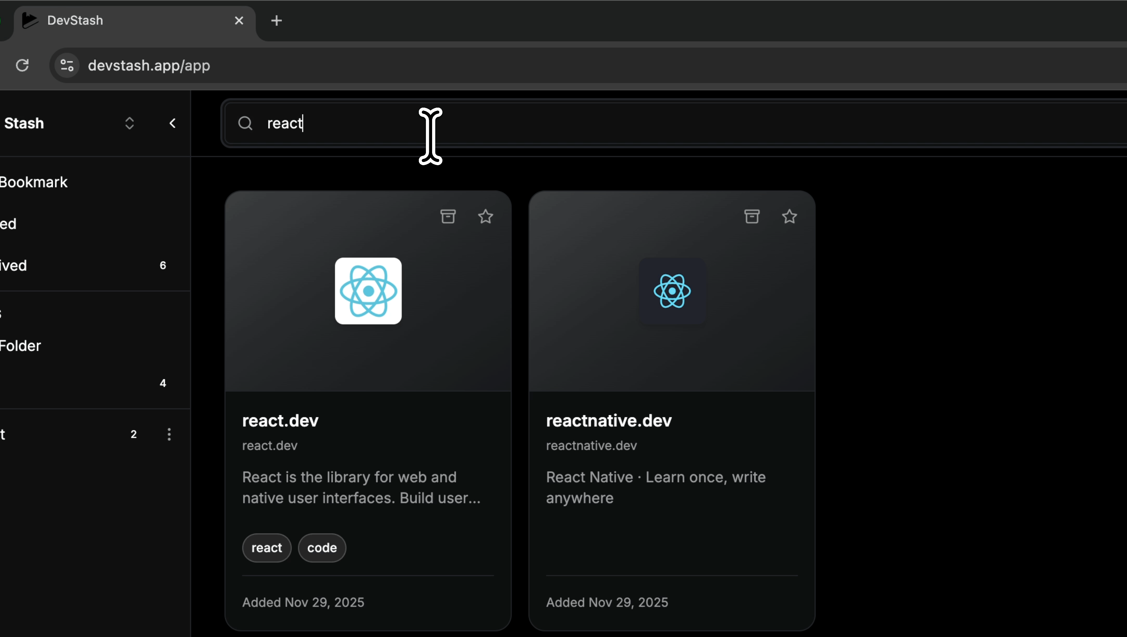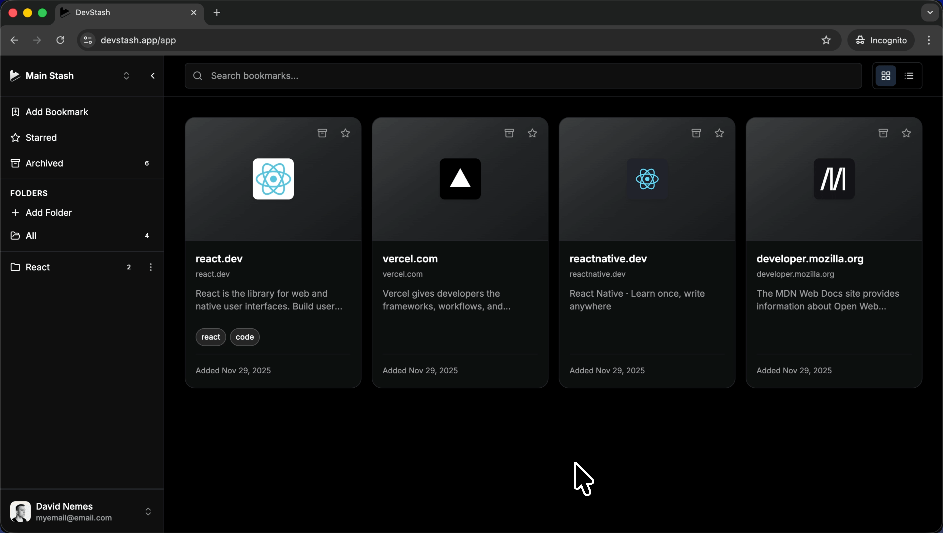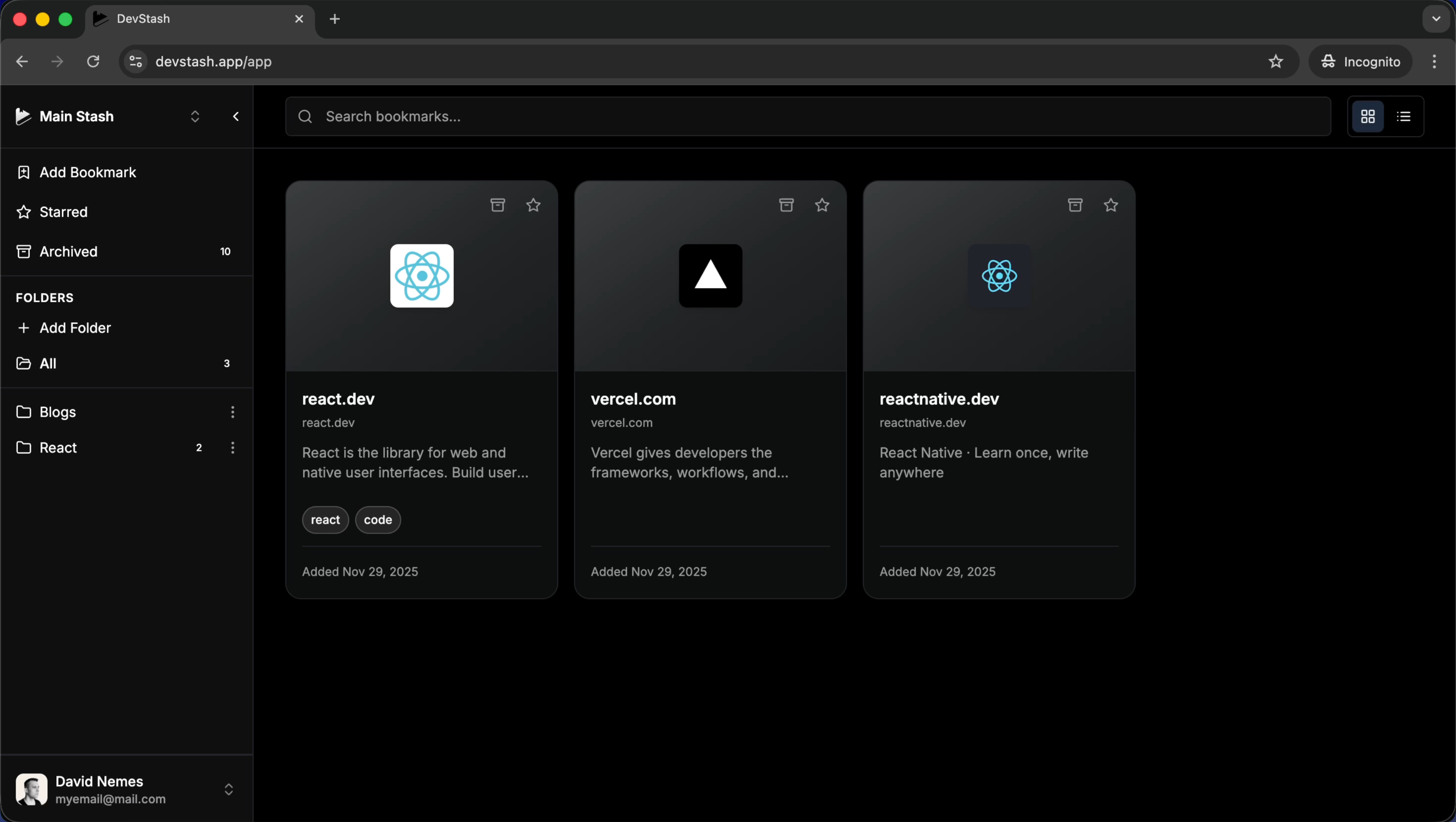 DevStash lets you save, organize, and find your links while keeping your data private.